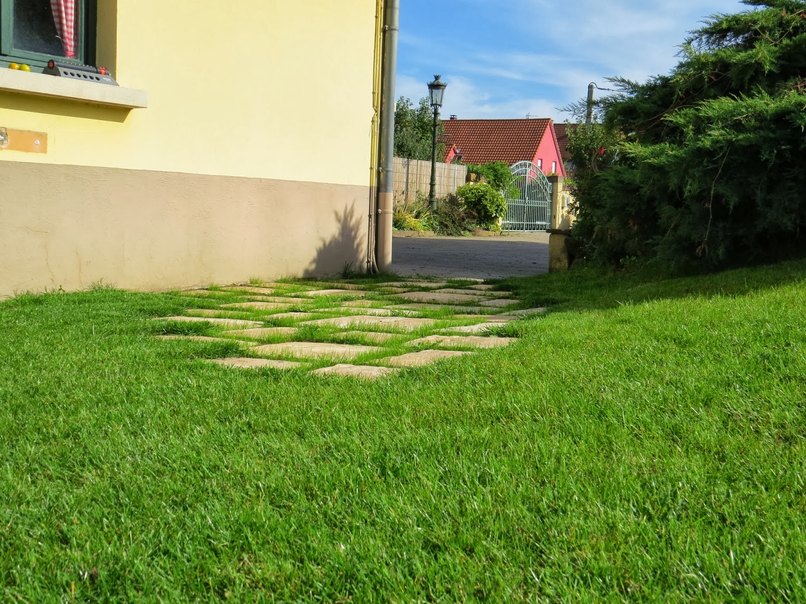 | La pelouse a été semé le 6 juin, et on a acheté une palette de dalles Bradstone qui ont été posé au mois d'août | ![]() | ||||||||||||||||||